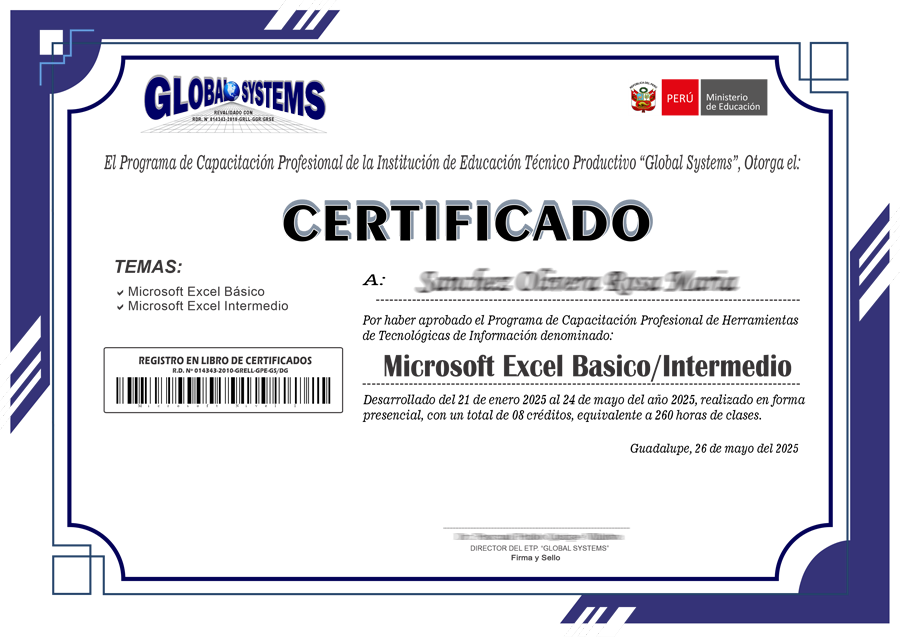 Obtendras un certificado a nombre del Ministerio de Educación