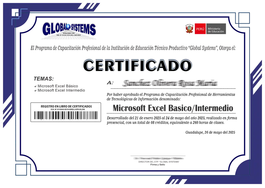 Obtendras un certificado a nombre del Ministerio de Educación